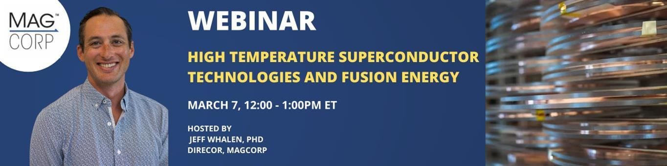 Mar. 7th, Fri. 12 PM to 1 PM EST at Online Event: High-Temperature Superconductor Technologies and Fusion Energy hosted by Dir. Jeff Whalen, MagCorp | Free Register