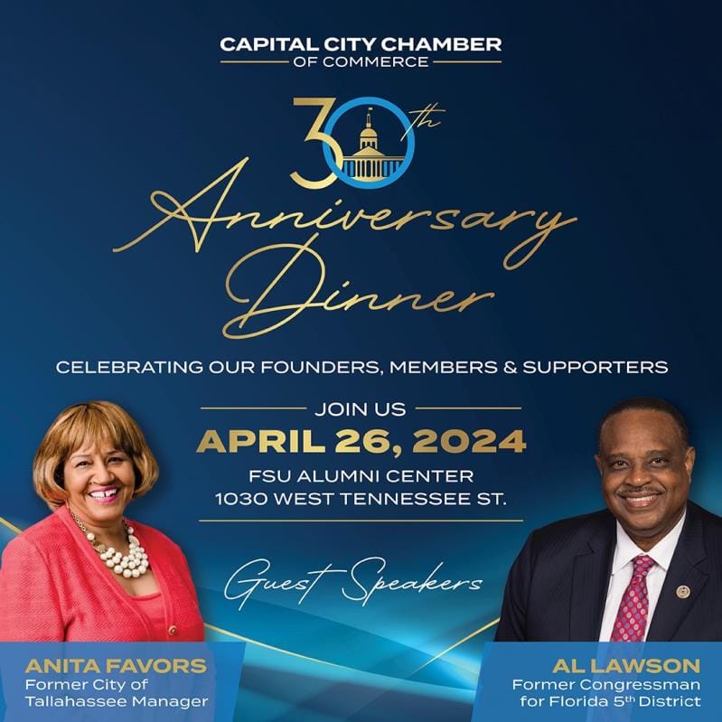 Apr. 26th, Fri. 6 PM EST at FSU Alumni Center: 30th Anniversary Dinner by Capital City Chamber of Commerce | Register