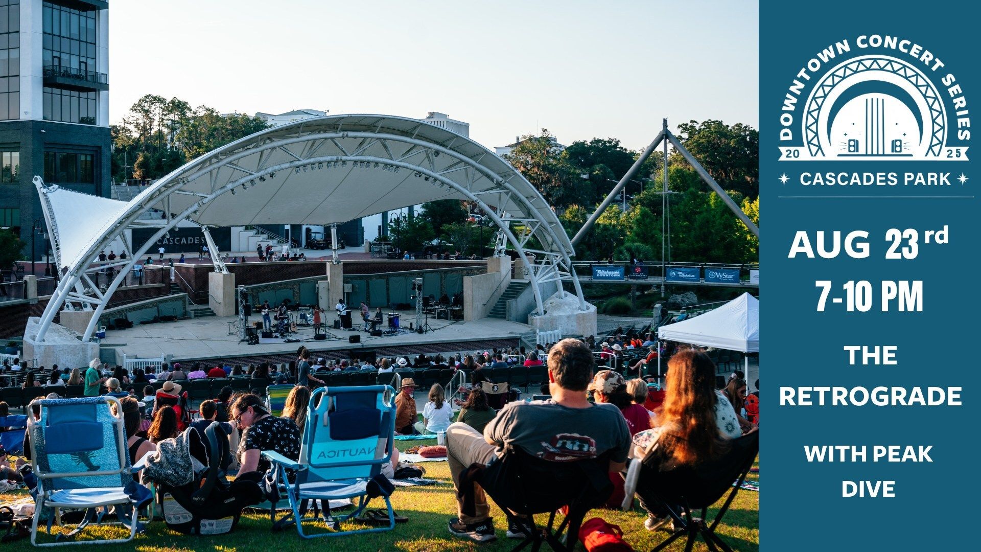 Featured Event: Downtown Concert Series: The Retrograde with Peak Dive | Saturday, Aug. 23 | 7 PM | The Adderley Amphitheater at Cascades Park | Free | Learn More
