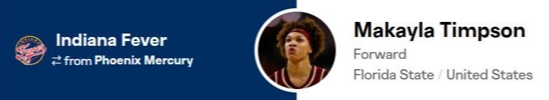Makayla Timpson, a senior forward from Florida State, was chosen by the Indiana Fever in the second round of the 2025 WNBA Draft, which took place on April 14th at The Shed in New York City.