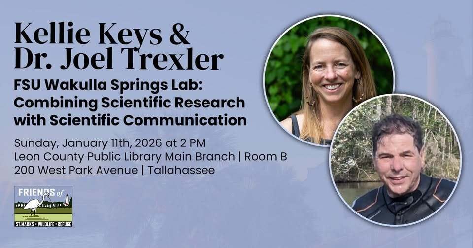 Featured Event: FSU Wakulla Springs Lab: Combining Scientific Research & Communication | Sunday, Jan. 11 | 2 PM | LeRoy Collins Leon County Public Library System, Room B, 200 W. Park Ave. | Free | Tickets