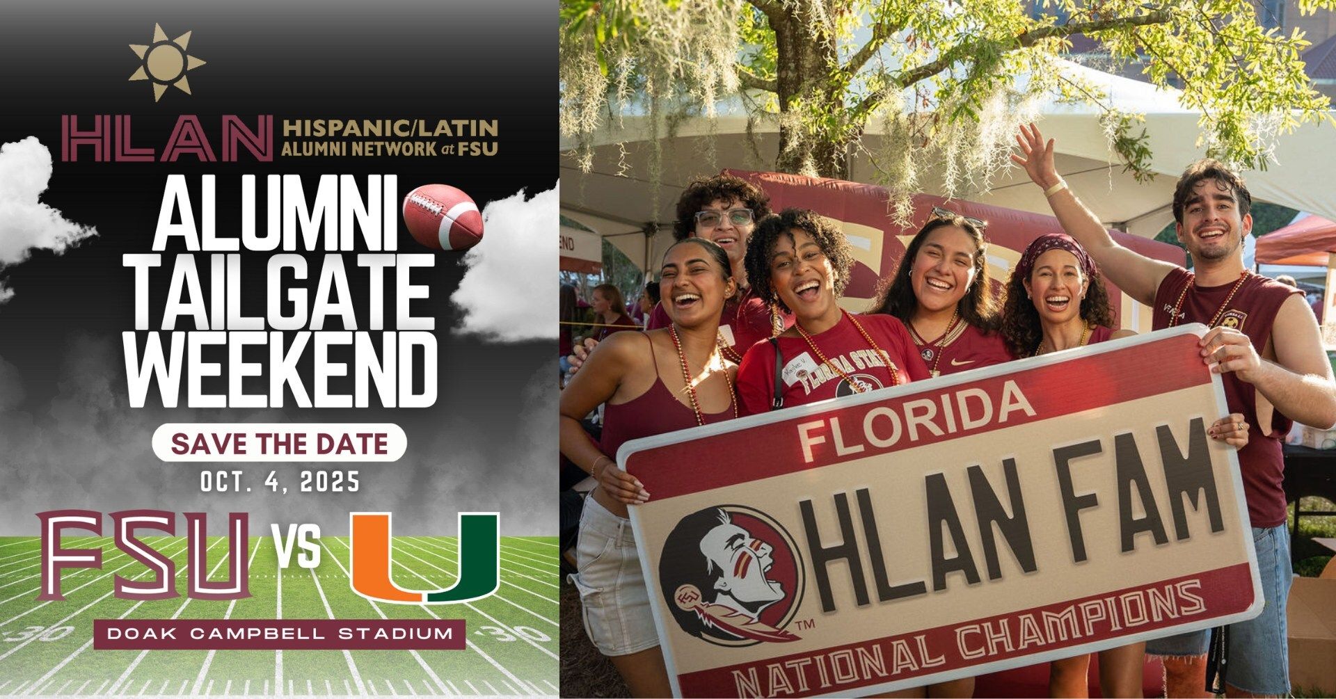 Featured Event: 3rd Annual Alumni Tailgate Weekend by Hispanic/Latin Alumni Network | Saturday, Oct. 4 | Doak S. Campbell Stadium, 403 Stadium Dr. W. | Register | Learn More