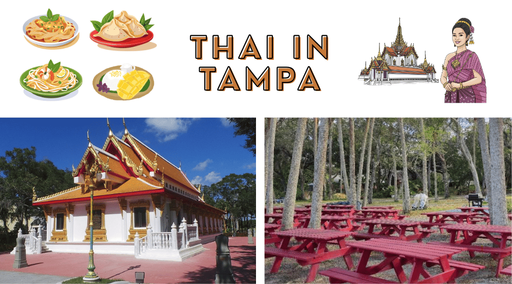 Tucked along the Palm River in Tampa, Wat Mongkolratanaram Buddhist Temple feels like a peaceful escape from everyday Florida life. Every Sunday from 9 AM to 1 PM, the temple hosts a lively Thai Food Market just next door at 5304 Palm River Rd. – and it’s become a must-visit destination for food lovers across the state. People drive in from all over Florida for the flavors, the culture, and the community.