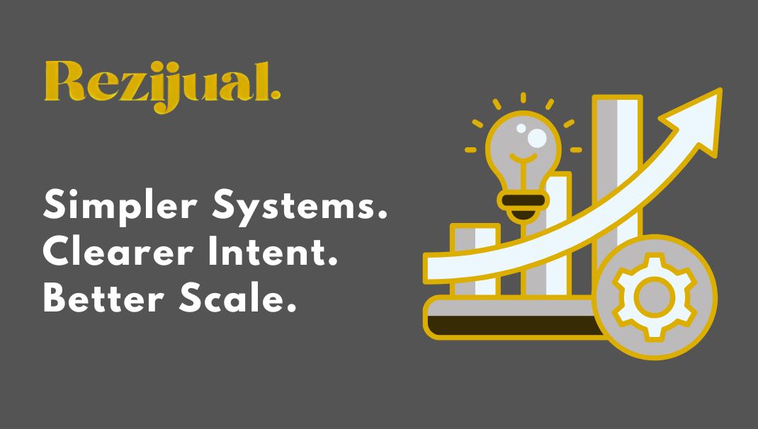 Intent Operating System (intOS) is Rezijual’s management and operational framework for aligning decisions, execution, and teams around clear intent. Designed to simplify decision-making and streamline execution, intOS replaces complexity with coherence—because simpler systems scale better when intent is clear.