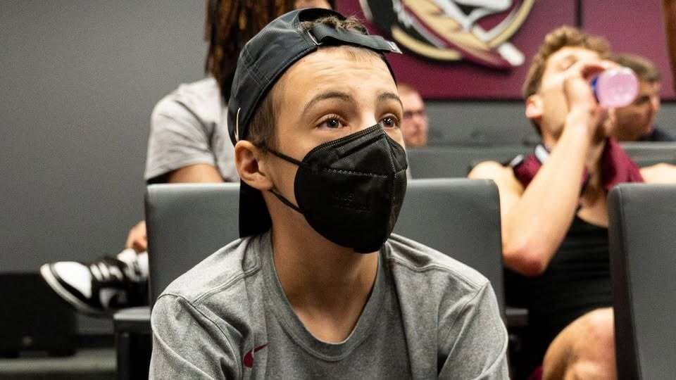 Trace has been unable to attend school and is limited on the court, where he wears a mask to protect his weakened immune system. He has three brain lesions, depends on lifelong steroids for adrenal insufficiency, and experiences other health effects from his illnesses. Being part of the Seminoles program and building relationships with the team and coaches is meaningful to Trace, who is now considered a teammate on Loucks’s 3-1 squad in his first year as head coach.
