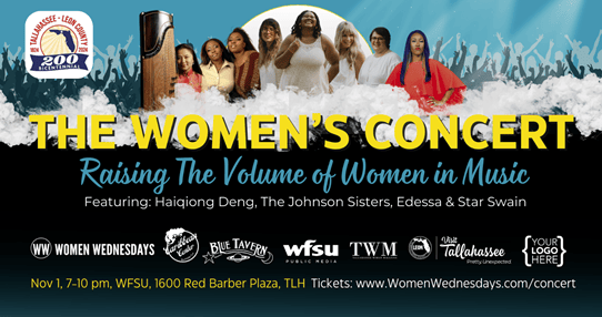 While publishing 1-2x a week seems easier, it’s actually more challenging to keep it short as we are now discovering that there is actually plenty to do in Tallahassee. The saying, “there’s nothing to do in Tallahassee” simply is not true. You just have to find the right community within the community. As we learn more about TLH, we keep finding new things. Speaking of community and recent partner, Women Wednesdays is having a concert fundraiser featuring local Women musicians and artists. Tickets are available now.