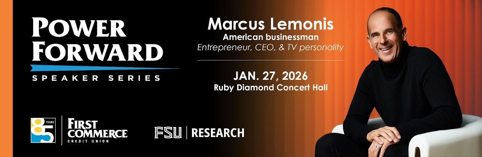 Featured Event: 2026 Power Forward Speaker Series by First Commerce and FSU Division of Research | Tuesday, Jan. 27 | Ruby Diamond Concert Hall | Main Floor – $20, Balcony – $15, Student (ID Required at Door) – $10 | Learn More