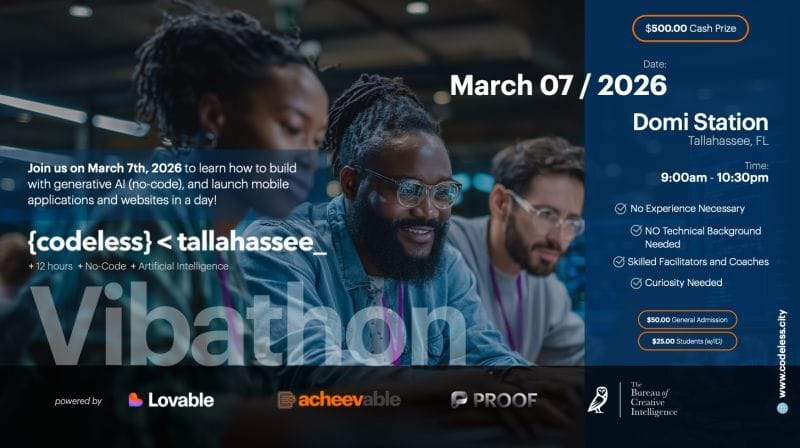 Limited spots available: Only 75 seats—register now to join this first-of-its-kind community Vibathon in Tallahassee.